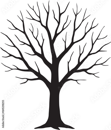 A Silhouette of a Bare Tree Against a White Background Depicts Autumnal Stillness and Winter Solitude