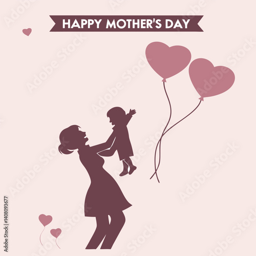 A silhouette of a joyful mother lifting her young child is centered in the image