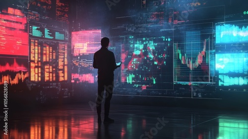 A Silhouette of a Person Standing Before a Wall of Digital Data