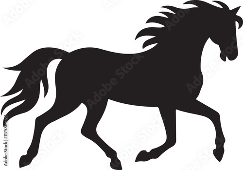 A silhouette of a running horse