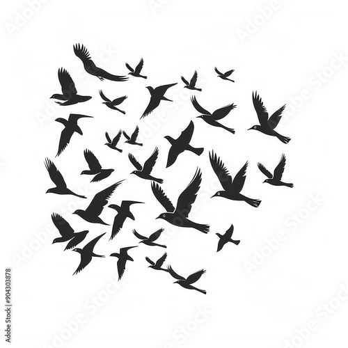 A silhouette of flying birds on a white background. Inspirational body flash tattoo ink. Vector.
