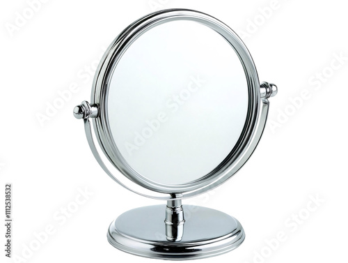 a silver mirror with a stand