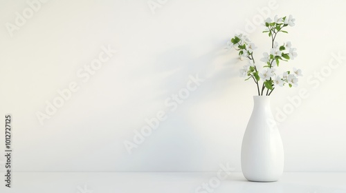 A simple and elegant arrangement of white flowers in a vase, set against a pure white background. The image evokes feelings of purity, peace, and serenity.
