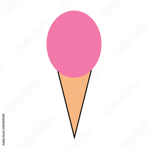 A simple and vibrant graphic of a pink scoop of ice cream atop an orange cone, presented in a minimalist flat style against a white background.