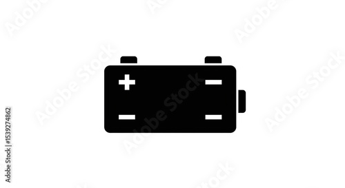 A simple black and white illustration of a battery with positive and negative terminals shown clearly