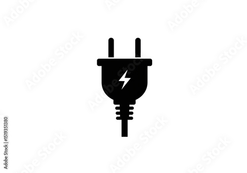 A simple black and white illustration of an electrical plug with a lightning bolt symbol on a white background