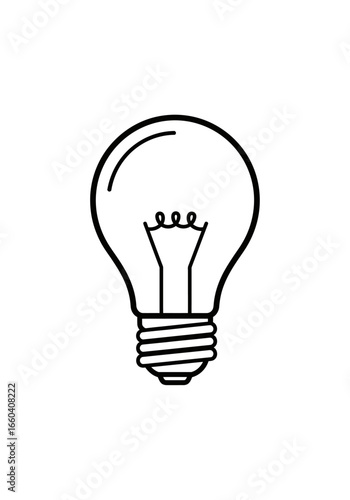 A simple black and white line drawing of a lightbulb with a visible filament.