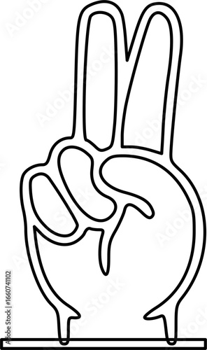 A simple black and white outline drawing of a hand making the peace or victory sign with two fingers raised.