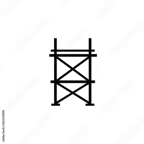 A simple black line art icon depicting a scaffolding structure, perfect for construction, industry, and DIY projects, offering a versatile symbol for building and repair imagery.