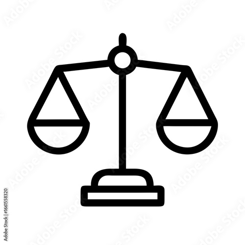 A simple black outline drawing of a balance scale with two pans on a white background illustration