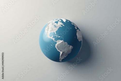 A Simple Blue Globe Depicting the Continents in Relief Against a Neutral Background