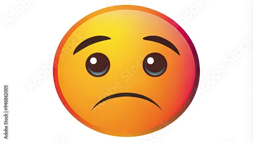 A simple, bold, and colorful vector illustration of a disappointed facial expression, featuring a prominent frown and downward-turned eyebrows on a white background.