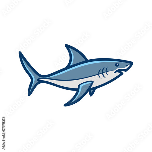A Simple Cartoon Illustration of a Great White Shark Swimming in the Ocean