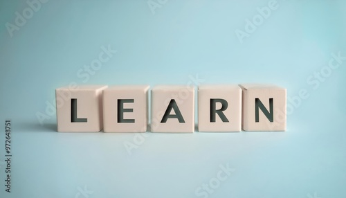 A simple composition of blocks spelling out 'LEARN' against a light blue backdrop, symbolizing education and growth.