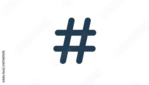 A simple, dark navy hashtag symbol stands out against a plain white background.