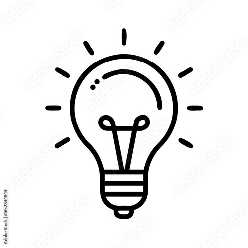 A simple graphic of a lightbulb emitting light rays on a white background in a minimalist style design