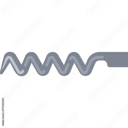 A Simple Gray Metallic Spiral Shape with a Rectangular End on a Transparent Background