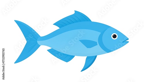A simple illustration of a blue fish swimming rightward, showing fins, a tail, eye, and gills against a white background