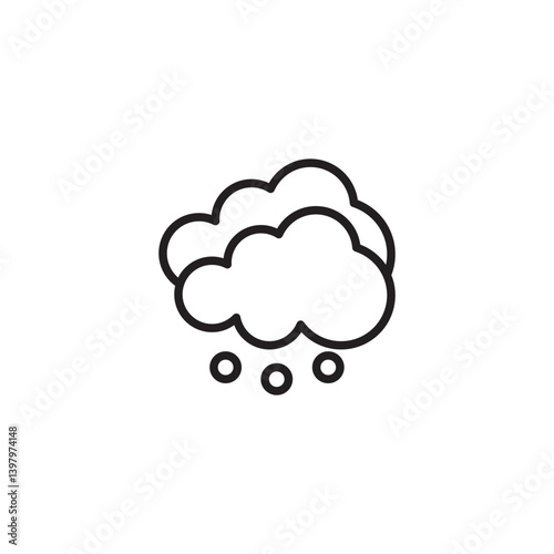 A simple line drawing features two fluffy clouds stacked vertically, with three small circles falling beneath them. Represents hail or sleet.
