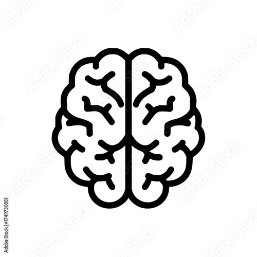 A simple line drawing of a human brain with distinct left and right hemispheres on a white background