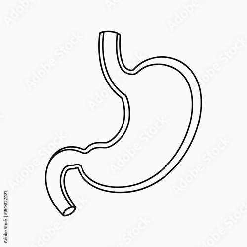 A simple line drawing of a human stomach and small intestine anatomy