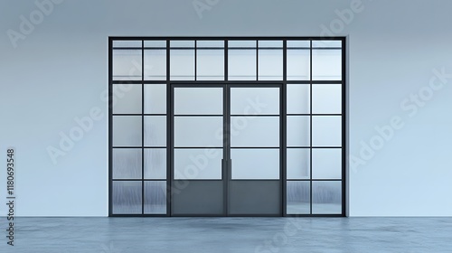 A simple metal door with large glass panels, providing a contemporary design.