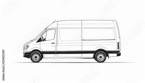 A simple, minimalistic side view of a delivery van outlined in black, representing transportation or logistics concepts suitable for commercial or service-related themes.