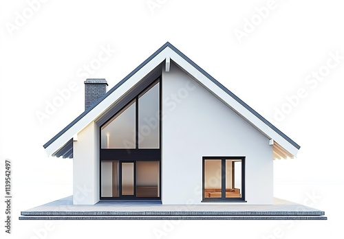 a simple modern house with gable roof, white background, 3d illustration style