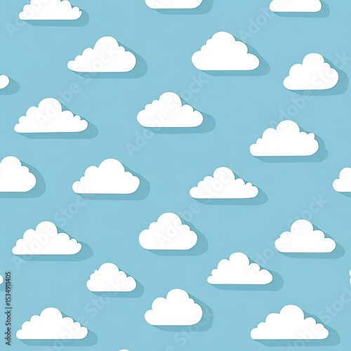 A simple, repeating pattern of clouds against a light blue sky. Soft shadows give a 3D effect