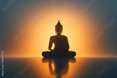 A simple, serene depiction of Buddha sitting in a meditative pose, centered against a soft gradient background