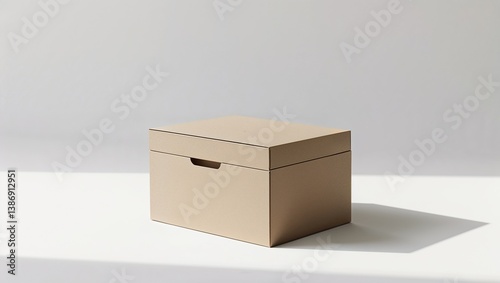 A simple, square kraft paper box with a lid sits on a flat surface, illuminated by natural light, showcasing its clean lines and functional design, perfect for storage or gifting.