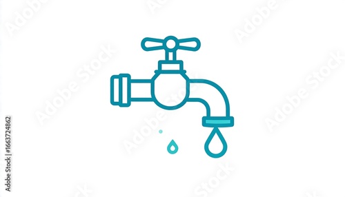 A simple, teal-shaded illustration depicts a water faucet with a dripping water droplet.