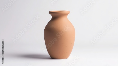 A simple, terracotta vase with a smooth, rounded shape is displayed against a light background, emphasizing its earthy color and classic design.