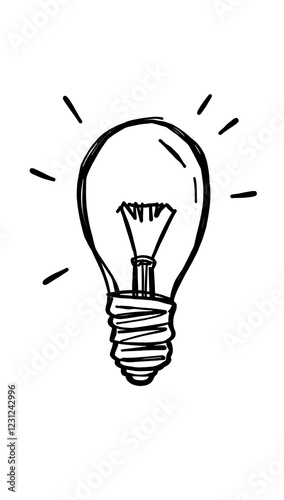 A simple, thick black-lined doodle of a classic incandescent light bulb, drawn in a casual, hand-sketched style on a white background.