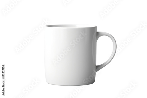 A simple white ceramic mug with a smooth, minimalist design. Isolated on white background
