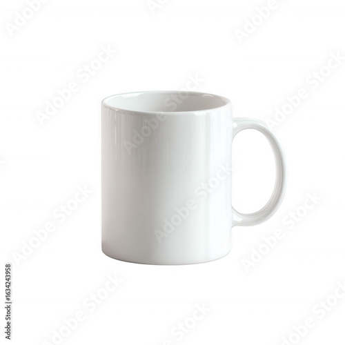 A simple white coffee mug with a smooth surface, ideal for personalizing with designs or logos. Perfect for showcasing beverages or as a stylish accessory in kitchens.