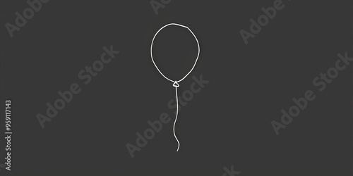 A simple white line drawing on a black background of a balloon floating upwards. The minimalist design creates a joyful and lighthearted scene.
