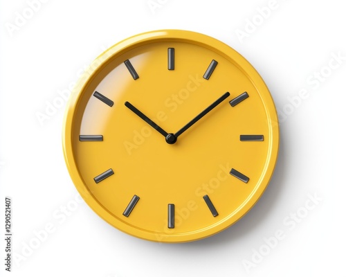 A simple yellow clock icon with smooth circular edges and black hands, minimalistic design on white