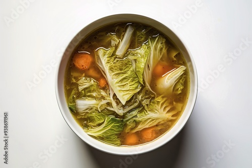 A simple yet appetizing image of a steaming bowl of cabbage soup