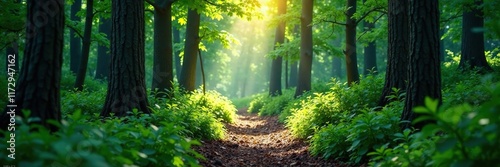 A single arrow points into the heart of the forest, arrow, forest path, foliage