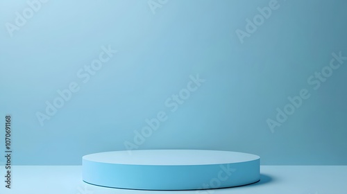 A Single Blue Cylinder Platform on a Blue Background. Copy space concept. Display for product presentation.