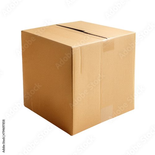 A single cardboard box stands out against a transparent background isolated on transparent background
