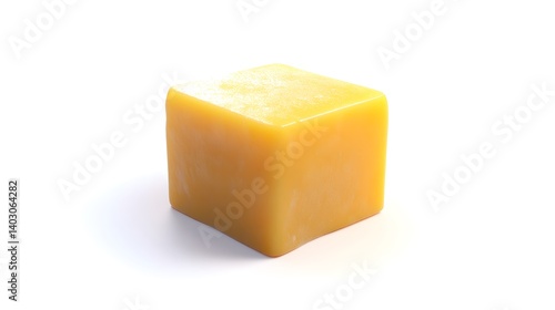 A single, cube-shaped piece of yellow wax sits on a white background. Its smooth, slightly glossy surface suggests a high-quality product.