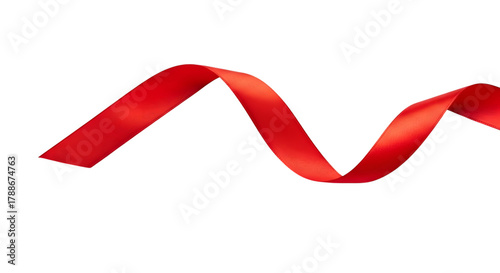 A single, flowing, wavy red ribbon isolated on a transparent background