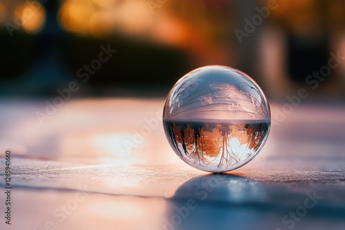 A single glass ball sits atop a city sidewalk, awaiting discovery or attention