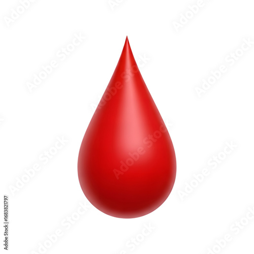 A single glossy red blood drop with a pointed tip isolated on transparent background