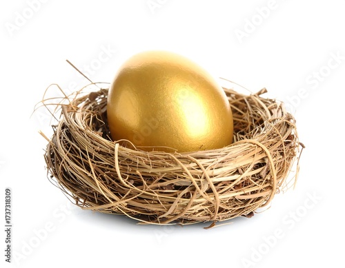 A Single Golden Egg Resting in a Natural Nest