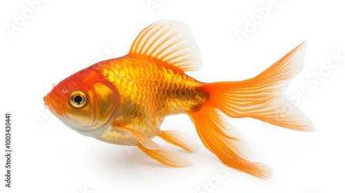 A Single Goldfish Isolated on a White Background