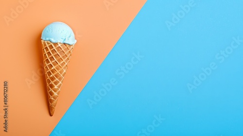 A single ice cream cone on a vibrant colored background in a minimal style, Ai Generated