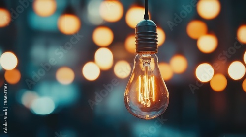 A Single Illuminated Light Bulb Hanging Against A Blurred Background of Warm Lights